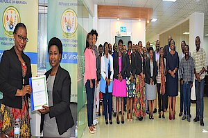 Umuyobozi w’Akarere Bwana NKUSI Christophe ari kumwe n'Umuyobozi w'Akarere wungirije ushinzwe imibereho myiza y'abaturage Madamu Mukunduhirwe…