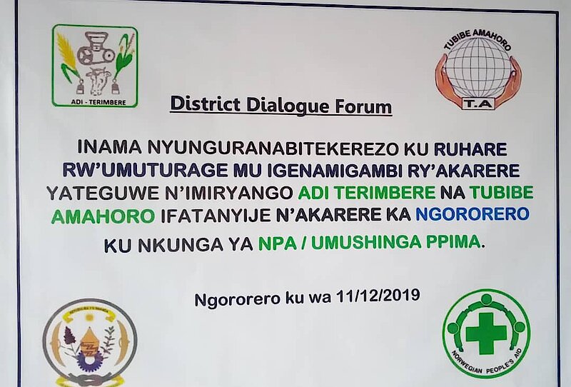 Kuwa 12/12/2019 kuri Blue House y'Akarere ka Ngororero hateraniye inama ku IGENAMIGAMBI RY'AKARERE yibanze ku guhuza ibitekerezo byatanzwe n'abaturage binyuze mu makarita nsuzumamikorere bakoreye mu Nteko z'utugari kubyo bifuza ko byajya muri iryo genamigambi rya 2020-2021. Iyi nama yateguwe n'Imiryango ADI TERIMBERE naTUBIBE AMAHORO binyuze mu mushinga PPIMA uterwa inkunga na NPA.