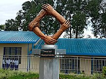 Aha hari igicumbi cy'Intwari z'Imena z'abanyeshuli banze kwitandukanya bashingiye ku bwoko nk'uko babisabwaga n'abicanyi ahubwo bagasubiza bati " Twese turi abanyarwanda".