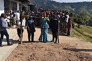 Umuyobozi w’Akarere Bwana NKUSI Christophe ari kumwe n'Umuyobozi w'Akarere wungirije ushinzwe imibereho myiza y'abaturage Madamu Mukunduhirwe…