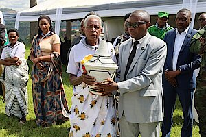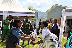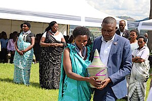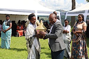 Umuyobozi w’Akarere Bwana NKUSI Christophe ari kumwe n'Umuyobozi w'Akarere wungirije ushinzwe imibereho myiza y'abaturage Madamu Mukunduhirwe…
