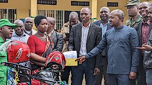 Umuyobozi w’Akarere Bwana NKUSI Christophe ari kumwe n'Umuyobozi w'Akarere wungirije ushinzwe imibereho myiza y'abaturage Madamu Mukunduhirwe…