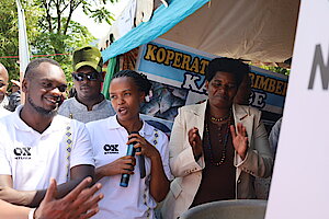 Mugenzi we witwa Muhimpundu Anathalie ati“ Jyewe nungutse inama mu buhinzi, nabonye igitoki kinini cy’umuhinzi wahawe amahugurwa yo kuvugurura urutoki urumva ko nanjye ngiye guhinga neza nkiteza imbere.”