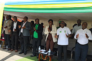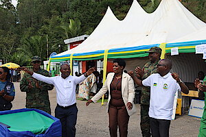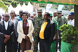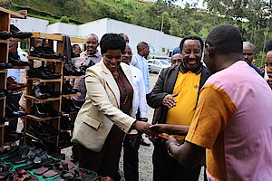 Umuyobozi w’Akarere Bwana NKUSI Christophe ari kumwe n'Umuyobozi w'Akarere wungirije ushinzwe imibereho myiza y'abaturage Madamu Mukunduhirwe…
