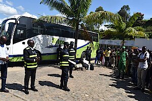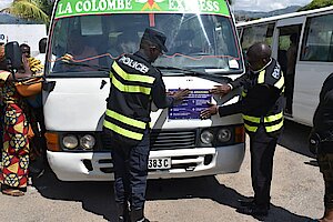 Mu rwego rwo gukomeza kwirinda impanuka zo mu muhanda umuyobozi w'akarere ka Ngororero Bwana Nkusi Christophe, DPC/ Ngororero Julien NKURIKIYINKA, abatwara ibinyabiziga n'abagenzi bazindukiye mu gikorwa cya "GERAYO AMAHORO"