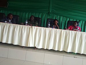 Umuyobozi w’Akarere Bwana NKUSI Christophe ari kumwe n'Umuyobozi w'Akarere wungirije ushinzwe imibereho myiza y'abaturage Madamu Mukunduhirwe…