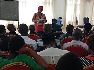 amahugurwa y'abahesha b'inkiko batari ab'umwuga yagenewe abanyamabanga nshingwabikorwa b'imirenge n'utugari. Yatanzwe n‘umukozi wa Minisiteri y'ubutabera akaba akora muri MAJ y'Akarere ka Ngororero Ndayambaje Clément ari kumwe n'umuhesha w'inkiko w'umwuga Nyiraneza Caritas.