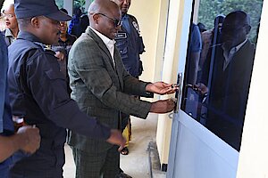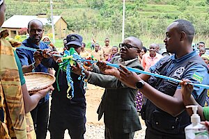 Umuyobozi w'Akarere Bwana Nkusi Christophe yayoboye igikorwa cyo gutaha ku mugaragaro ibiro bishya by'Akagari ka kazabe mu murenge wa Ngororero.
