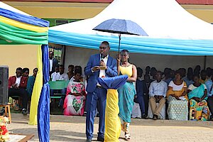 Umuyobozi w’Akarere Bwana NKUSI Christophe ari kumwe n'Umuyobozi w'Akarere wungirije ushinzwe imibereho myiza y'abaturage Madamu Mukunduhirwe…