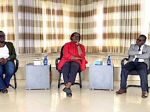 Umuyobozi w’Akarere Bwana NKUSI Christophe ari kumwe n'Umuyobozi w'Akarere wungirije ushinzwe imibereho myiza y'abaturage Madamu Mukunduhirwe…