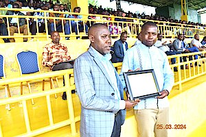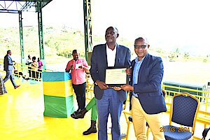 Umuyobozi w’Akarere Bwana NKUSI Christophe ari kumwe n'Umuyobozi w'Akarere wungirije ushinzwe imibereho myiza y'abaturage Madamu Mukunduhirwe…