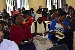 Hari mu nama yayobowe na Madamu Mukunduhirwe Benjamine, Umuyobozi w'Akarere wungirije ushinzwe imibereho myiza y'Abaturage. Yari itumiwemo abagize DPEM yaguye baturutse ku rwego rw'Akarere, Ibitaro, Imirenge n'Ibigo Nderabuzima.