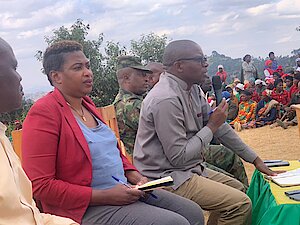 Umuyobozi w’Akarere Bwana NKUSI Christophe ari kumwe n'Umuyobozi w'Akarere wungirije ushinzwe imibereho myiza y'abaturage Madamu Mukunduhirwe…