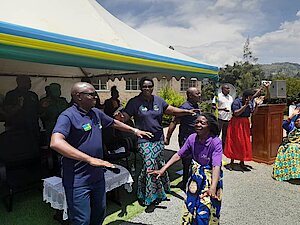 Umuyobozi w’Akarere Bwana NKUSI Christophe ari kumwe n'Umuyobozi w'Akarere wungirije ushinzwe imibereho myiza y'abaturage Madamu Mukunduhirwe…
