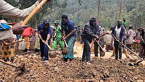 1.Abayobozi bifatanije n’abaturage mu muganda wo gutunganya umuhanda wangirijwe n'isuri