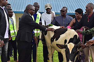 Umuyobozi w’Akarere Bwana NKUSI Christophe ari kumwe n'Umuyobozi w'Akarere wungirije ushinzwe imibereho myiza y'abaturage Madamu Mukunduhirwe…