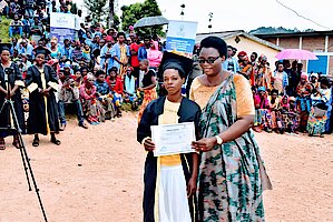 Bakomeje berekwa umusaruro wavuye mu buhinzi, banatanga impamyabumenyi ku banyeshuri b'abakobwa batwise inda zitateganijwe barangije mu myuga itandukanye.