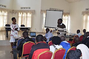Umuyobozi w’Akarere Bwana NKUSI Christophe, afatanyije na Visi Meya ushinzwe Imibereho Myiza y’Abaturage, Madamu MUKUNDUHIRWE Benjamine yayoboye inama…