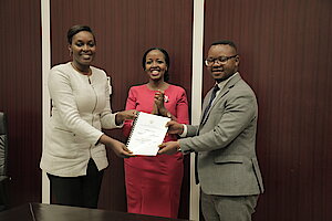 Umuyobozi w’Akarere Bwana NKUSI Christophe ari kumwe n'Umuyobozi w'Akarere wungirije ushinzwe imibereho myiza y'abaturage Madamu Mukunduhirwe…