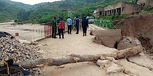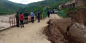 Minister Kayisire n'abo bari kumwe basuye ikiraro cy'ahitwa ku rutindo gihuza imirenge ya Muhororo, Kageyo, Kavumu na Sovu babona uburyo cyangiritse; babonye uburyo