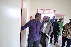 Umuyobozi w’Akarere Bwana NKUSI Christophe ari kumwe n'Umuyobozi w'Akarere wungirije ushinzwe imibereho myiza y'abaturage Madamu Mukunduhirwe…