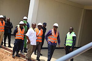 Yatangiriye uru ruzinduko mu murenge wa Nyange aho yatambagijwe inyubako nshya za laboratwari n'inzu y'ababyeyi (materinite) byuzuye bifite agaciro ka 176,000,000 frws.