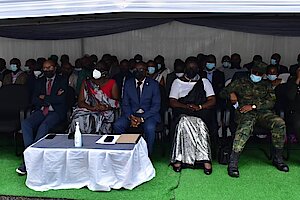Umuyobozi w’Akarere Bwana NKUSI Christophe ari kumwe n'Umuyobozi w'Akarere wungirije ushinzwe imibereho myiza y'abaturage Madamu Mukunduhirwe…