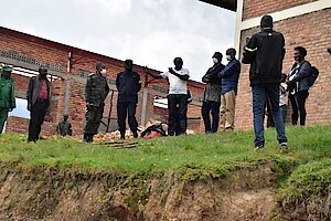Mu murenge wa Kabaya Minister Kayisire yasuye ahubakwa ibyumba by'amashuri n'ubwiherero kuri EP Mwendo.