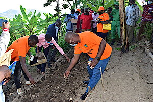 Umuyobozi w’Akarere Bwana NKUSI Christophe ari kumwe n'Umuyobozi w'Akarere wungirije ushinzwe imibereho myiza y'abaturage Madamu Mukunduhirwe…