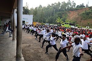 Saa kumi nimwe bari bageze mu mihanda hirya no hino mu mirenge intero ari imwe, inyikirizo ari imwe: "Siporo ni ubuzima. Abagore twagiye." Kuri uyu wa 2/06 siporo yari imaze icyumweru cyose itegurwa ku rwego rw'Igihugu muri rusange no mu Karere ka Ngororero by'umwihariko yahuje abagore bari babukereye baherekejwe na basaza babo n'inzego z'umutekano.