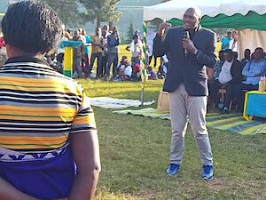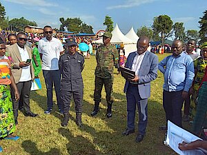 Umuyobozi w’Akarere Bwana NKUSI Christophe ari kumwe n'Umuyobozi w'Akarere wungirije ushinzwe imibereho myiza y'abaturage Madamu Mukunduhirwe…
