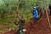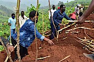 Bakiriwe n'umuyobozi w'Akarere Bwana Nkusi Christophe ari kumwe n'umuyobozi w'Akarere wungirije ushinzwe imibereho myiza n''inzego z'umutekano. Bifatanije n'abaturage mu kurwanya isuri ku misozi ihanamye no gutunganya amazu y'abatishiboye.