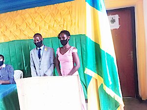 Umuyobozi w’Akarere Bwana NKUSI Christophe ari kumwe n'Umuyobozi w'Akarere wungirije ushinzwe imibereho myiza y'abaturage Madamu Mukunduhirwe…