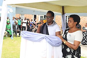 Umuyobozi w’Akarere Bwana NKUSI Christophe ari kumwe n'Umuyobozi w'Akarere wungirije ushinzwe imibereho myiza y'abaturage Madamu Mukunduhirwe…