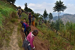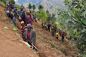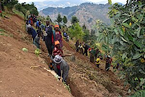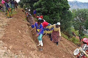 Ibikorwa byabanjirijwe n'umuganda wo kurwanya isuri hacukurwa imirwanyasuri mu kagari ka Mashya..