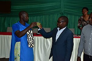 Umuyobozi w’Akarere Bwana NKUSI Christophe ari kumwe n'Umuyobozi w'Akarere wungirije ushinzwe imibereho myiza y'abaturage Madamu Mukunduhirwe…
