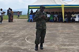 Umuyobozi w'ingabo mu turere twa Ngororero na Rutsiro Lt Col Ndengeyinka John yabwiye abitabiriye ibirori by'umwihariko urubyiruko ko igihe hizihizwa uyu munsi buri wese agomba kongera kuzirikana uburyo bwo kugera ikirenge mu cy'intwari