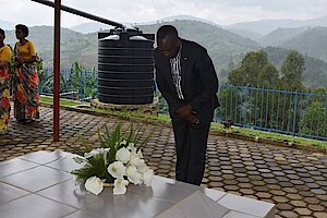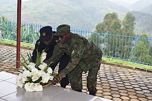 Umuyobozi w'akarere n'abakuru b'inzego z'umutekano bunamira Intwari