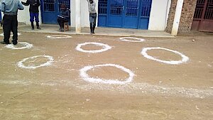 Urubyiruko rwo mu murenge wa Kabaya rurangajwe imbere na Tureme Deo uyobora Youth Training Center ya Kabaya rwagaragaje imbaraga mu bukangurambaga bwo kurwanya Coronavirus rukora igikorwa cya social distancing.