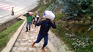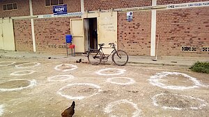 Babanje gutwara igitaka cy'ingwa Social distancing imbere y'ikigega cy'amafumbire