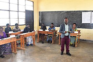 Bwana Daniel NSENGUMUREMYI uhagarariye umushinga USAID Soma Umenye mu karere ka Ngororero n’uhagarariye Imiyoborere y’amashuri mu mu mushinya USAID Soma Umenye BUNANI Cyprien nibo bahuzabikorwa b’aya mahugurwa y’abarimu.