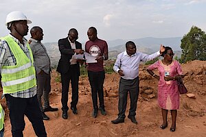 Mu gusura iri soko hari abatekinisiye b'Akarere Ntirikina Jean Bosco ushinzwe ibikorwaremezo na Munyarukiko Aloys ushinzwe ibidukikije bagenzuraga ibikorwa bya muntu birimo amasuri bibangamiye ibidukikije banashaka uburyo byabonerwa ibisubizo.