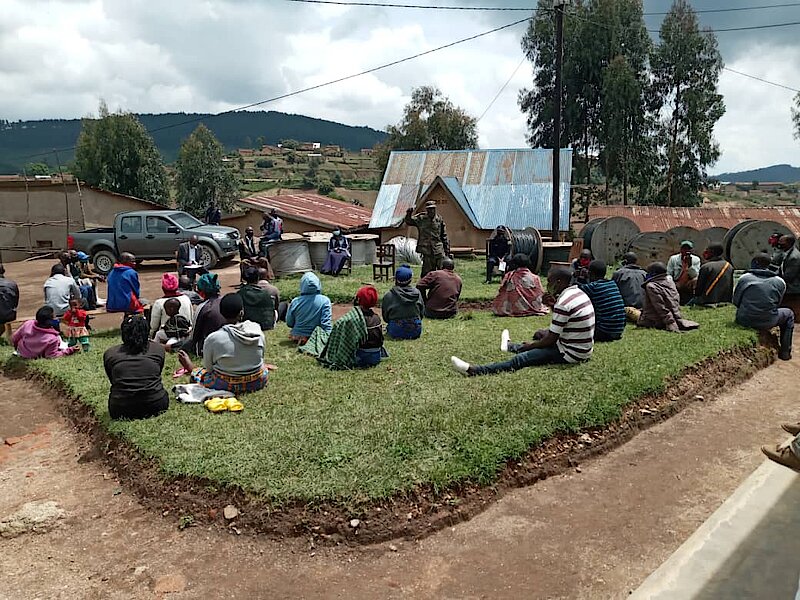 Inama yayobowe na Es Muhanda ari kumwe na AIP Amiel Tuyishimire Cmdt wa police Kabaya stn, S/Sgt Nzabandora Cyprien umuyobozi w' ingabo zikorera mu murenge wa Muhanda, n'umunyamabanga nshingwabikorwa w' akagari ka Bugarura.