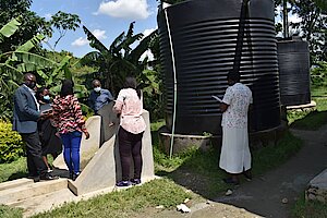 Umuyobozi w’Akarere Bwana NKUSI Christophe ari kumwe n'Umuyobozi w'Akarere wungirije ushinzwe imibereho myiza y'abaturage Madamu Mukunduhirwe…