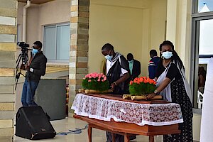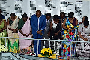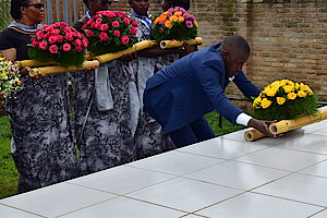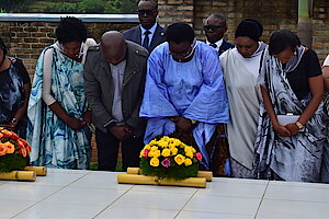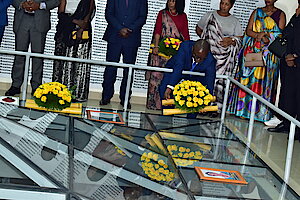 Hashyinguwe mu cyubahiro Imibiri 34 y'inzirakarengane yabonetse hanunamirwa inzirakarengane ziruhukiye mu rwibutso rwa Nyange hashyirwa indabyo aho baruhukiye.