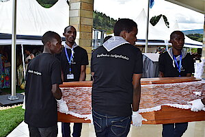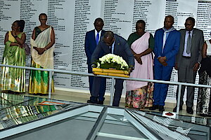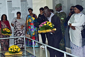 Uhagarariye IBUKA ku rwego rw'Igihugu Niyitanga Irené yagaye abateguye Jenoside bakanayishyira mu bikorwa barimo abahumanije insengero bakaziciramo inzirakarengane. Yagize ati "umugambi wo kutumaraho ntibawushoje kuko turiho kandi turakomeye"