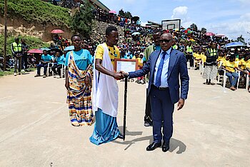 Umuyobozi w’Akarere Bwana NKUSI Christophe ari kumwe n'Umuyobozi w'Akarere wungirije ushinzwe imibereho myiza y'abaturage Madamu Mukunduhirwe…