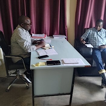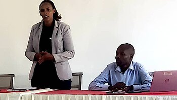 Umuyobozi NKUSI Christophe afashijwe na Visi-Meya ushinzwe imibereho myiza y'abaturage Madamu MUKUNDUHIRWE Benjamine yayoboye inama yasuzumye ibibazo…