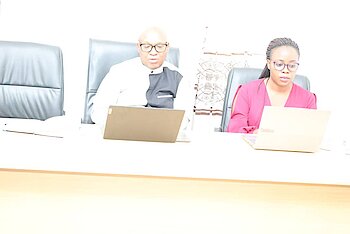Umunyamabanga uhoraho muri Minisiteri ishinzwe Ibikorwa by'Ubutabazi Bwana Aristarque Ngoga, ari kumwe n'Umuyobozi Mukuru muri Minaloc Madamu Bagire…